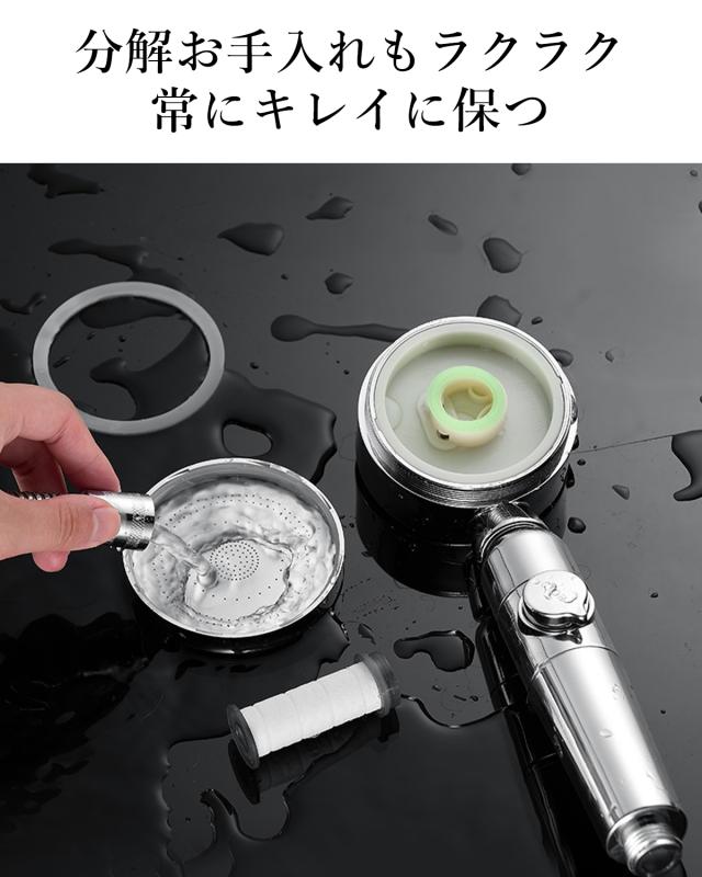・シャワーヘッドは分解洗浄が可能だからいつでも清潔に保つことができる。