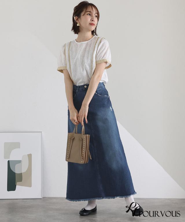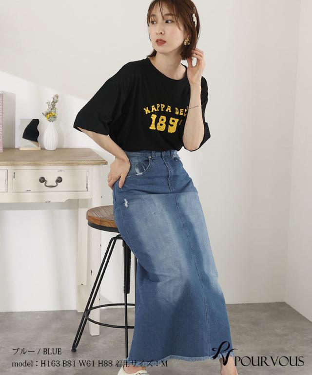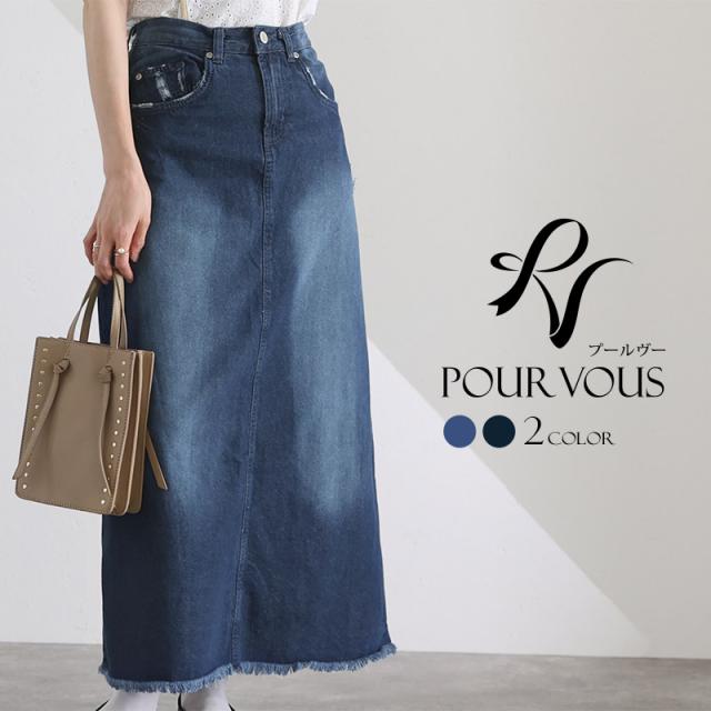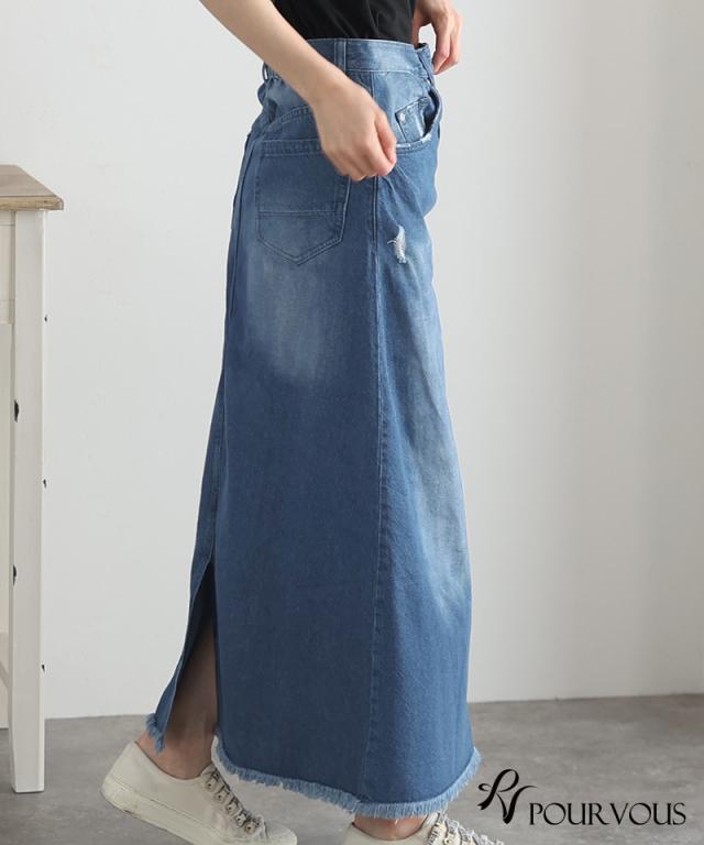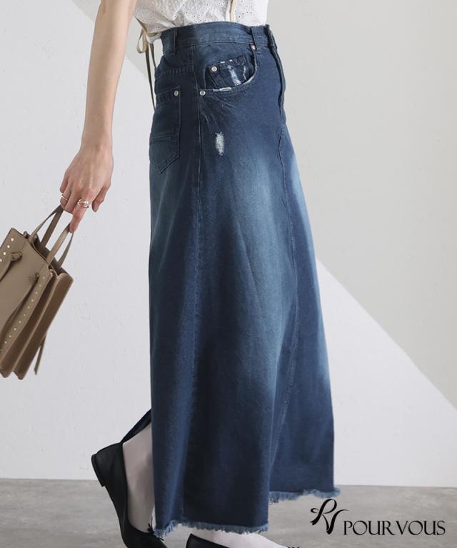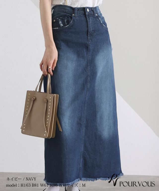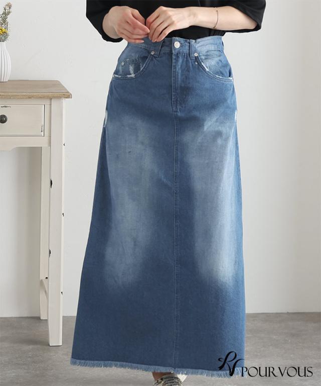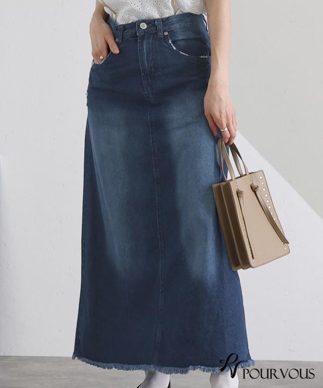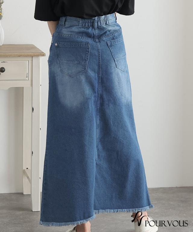 スカート 女の子 ボトムス レディース ロング ロングスカート 無地 ウエストゴム デニム マキシ マキシ丈 マキシスカート ロング丈 タイト フリンジ裾 フリンジ加工 着回し 着やせ 春夏 夏 春 10代 20代 30代 40代 50代 新作 ナチュラル 大人 体型カバー おしゃれ