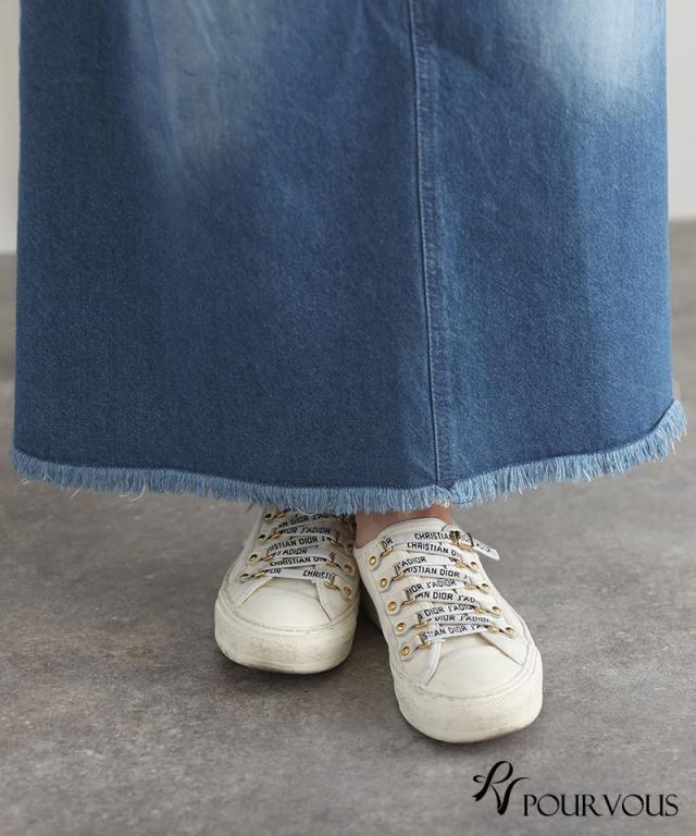 デニムフリンジロングスカート 【628211426】20代・30代・40代・50代ボトムス・レディース・カジュアル・ロング・ミモレ丈・膝丈・ウエスト・ゆったり・コーデ・フレア・シンプル・タイト・台形・薄手・厚手・無地・刺繍・花柄・可愛い・キレイめ・着やせ・新作・レース・上品・セットアップ・体型カバー・スタイルアップ・小さいサイズ・3Lや4L・・即日発送・送料無料・オフィス・ワーク・オールシーズン・デイリー・普段着・オケージョン・セミフォーマル・婚活・顔合わせ・同窓会・お呼ばれ・食事会・謝恩会・親族・七五三・お宮参り・冠婚葬祭・弔事・女子会・デート・入学式・卒業式・入園式・ママ