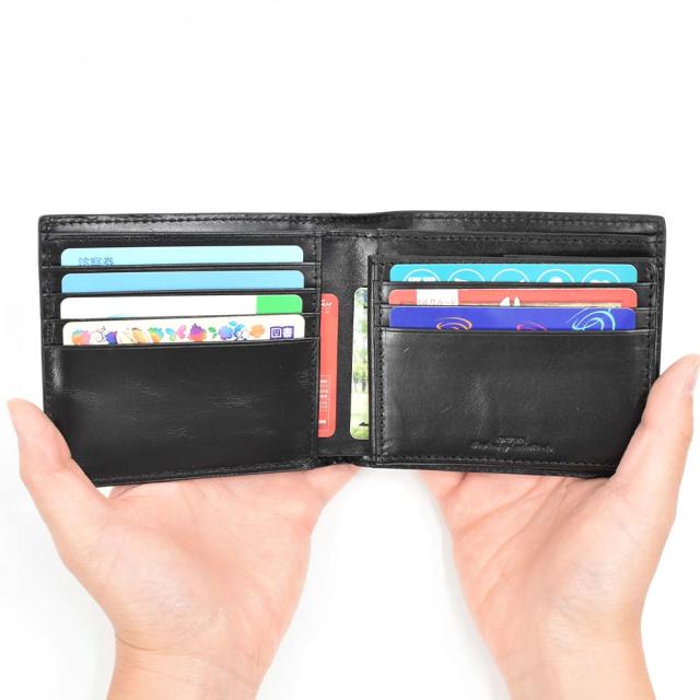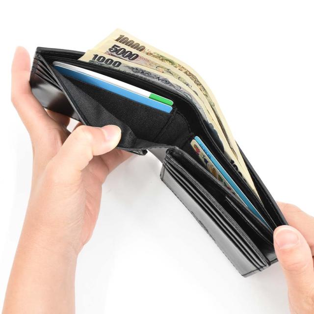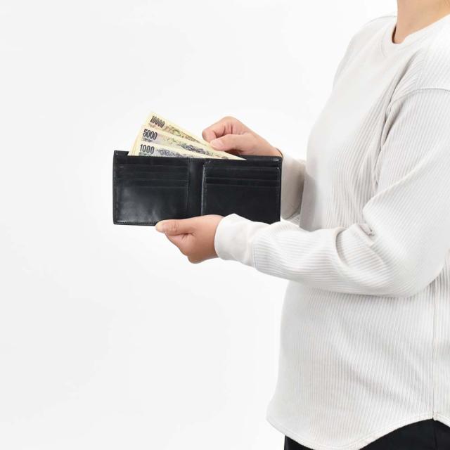シンプルで使いやすさを追求した二つ折り財布。スマートでポケットに入れてもかさばらないサイズ感です。