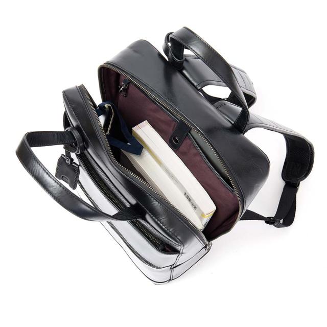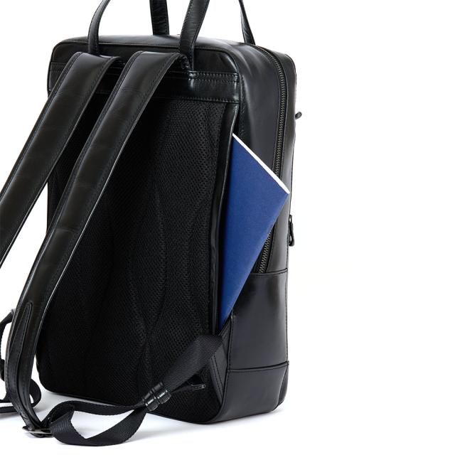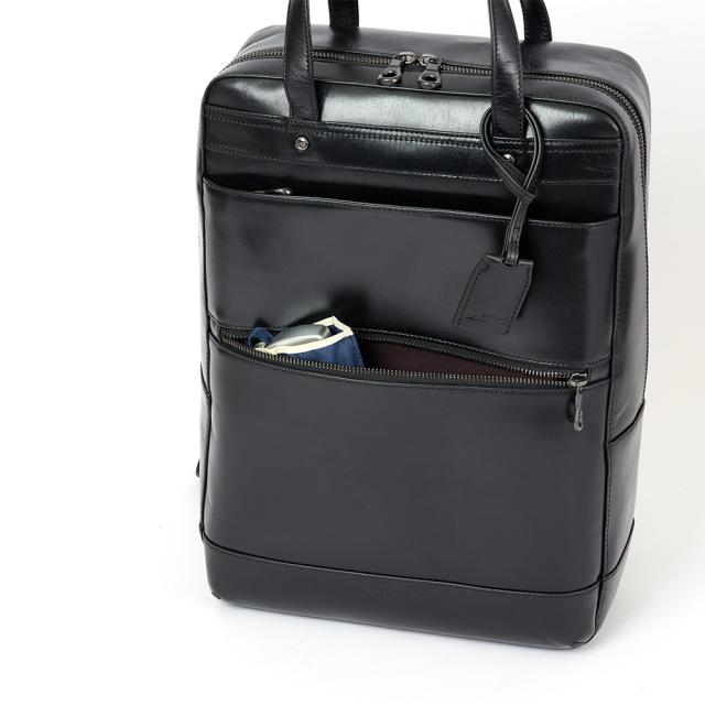 A4サイズや13.3インチPCを余裕を持って入れることができる収納力。メインルームは口がガバッと大きく開くので、中身の確認もしやすいようになっています。マチ幅もしっかり取っているので、書類も多く入り、500mlペットボトル等の収納もラクラクです。