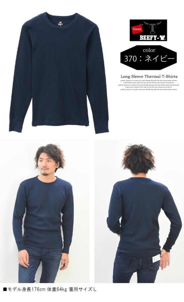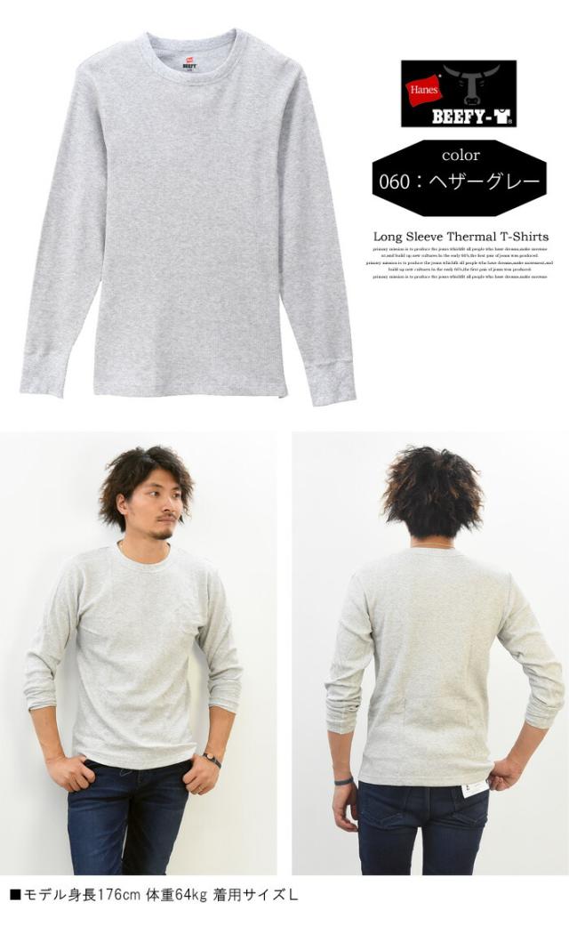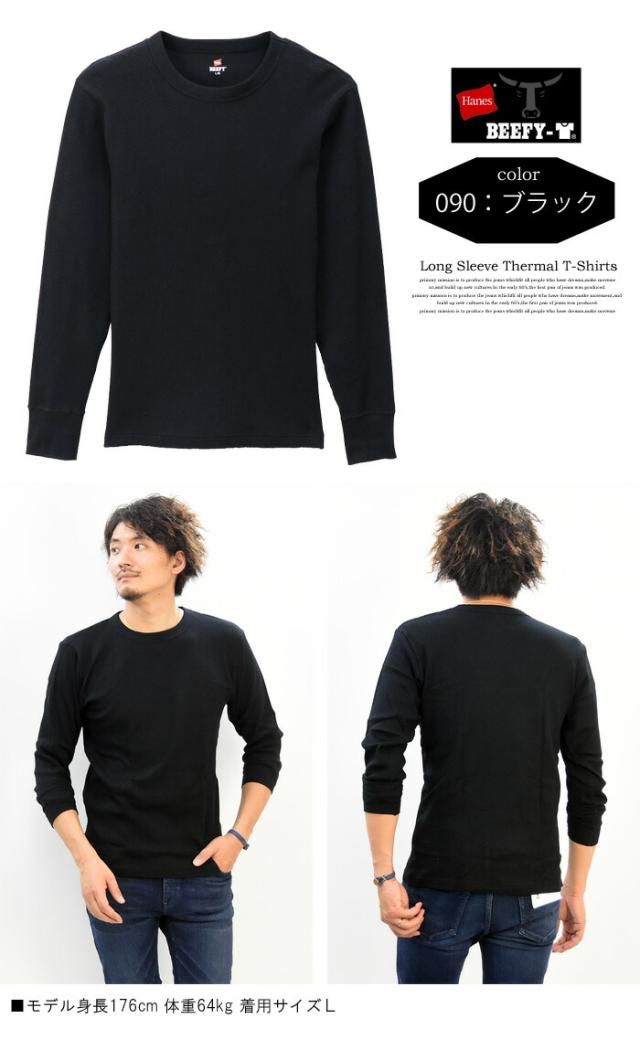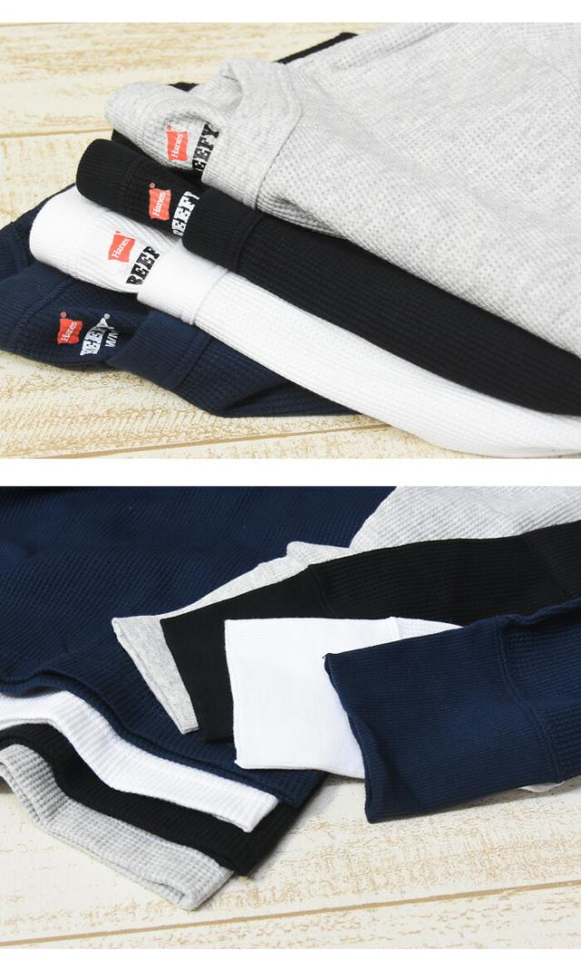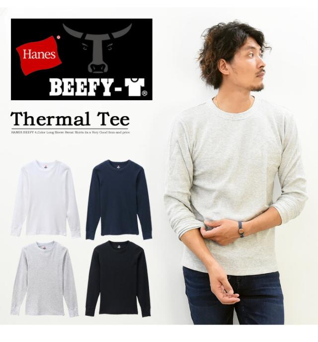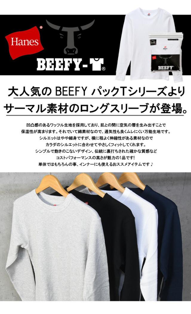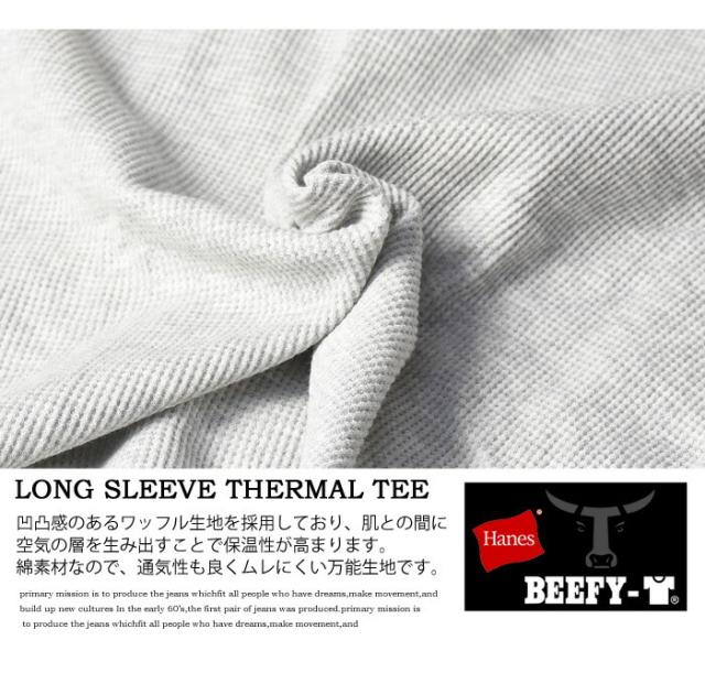 HANES ヘインズ BEEFY ビーフィー サーマル クルーネック 長袖Tシャツ 無地 インナー パックTシャツ ロングスリーブ 1P メンズ HM4-Q103