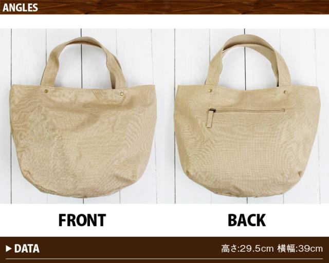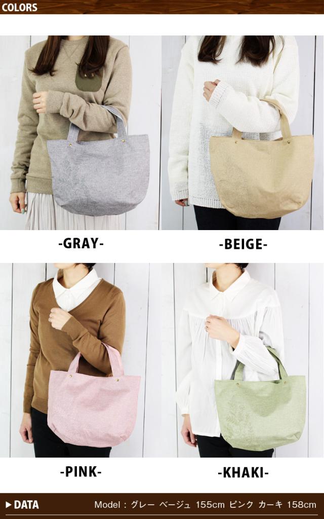 コロンとしたフォルムでフラワー刺繍がかわいいトートバッグ。