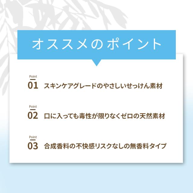 お肌にしみこまないせっけん成分だから、手荒れ予防に最適です。