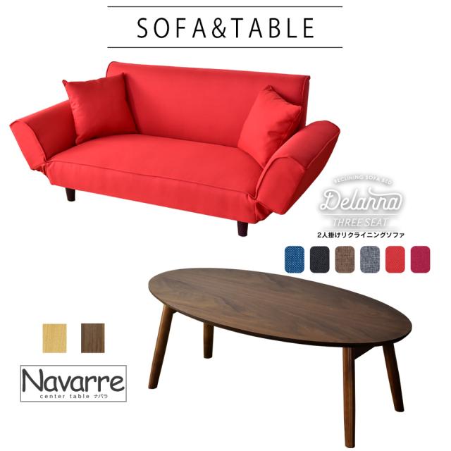 ソファー 2人掛け ソファーベッド リクライニングソファ 北欧 ローソファー センターテーブル ローテーブル 折りたたみ 棚付き 木製 デランナ2P ナバラ