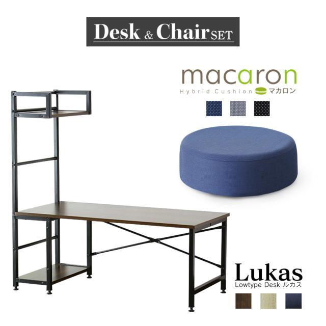 ローデスク パソコンデスク 袖机 座デスク ラック付き 木製 収納 書棚 クッション 低反発 高反発 座布団 丸型 座椅子 円型 極厚 ルカス マカロン(ラウンド)