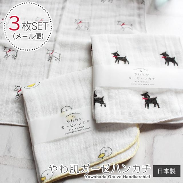 ハンカチ 3枚セット やぎ アヒル ヤギ ガーゼハンカチ ガーゼタオル ギフト 赤ちゃん 日本製 ベビー やわ肌ガーゼハンカチ ポイント消化