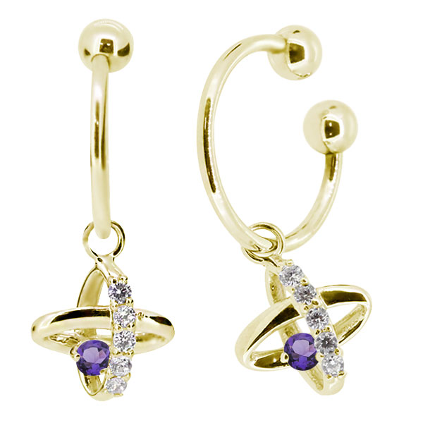 イヤーカフ レディース k18 揺れる イヤリング 星 宇宙 ノンホールピアス フープ アメジスト 両耳用
