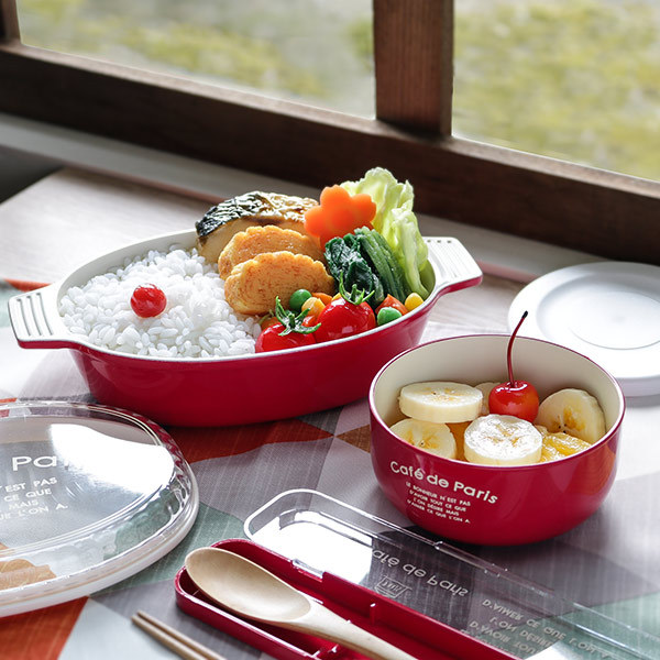 「Cafe de Paris」シリーズには、パリを思わせるトリコロールカラーのランチボックスやカトラリーセットなどの取り扱いがあります。同じシリーズを組み合わせて、カフェでのランチ気分をお楽しみください。