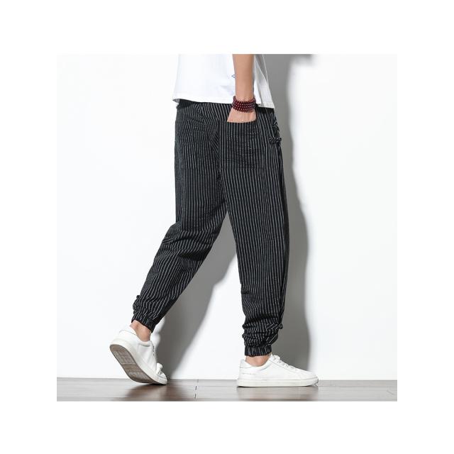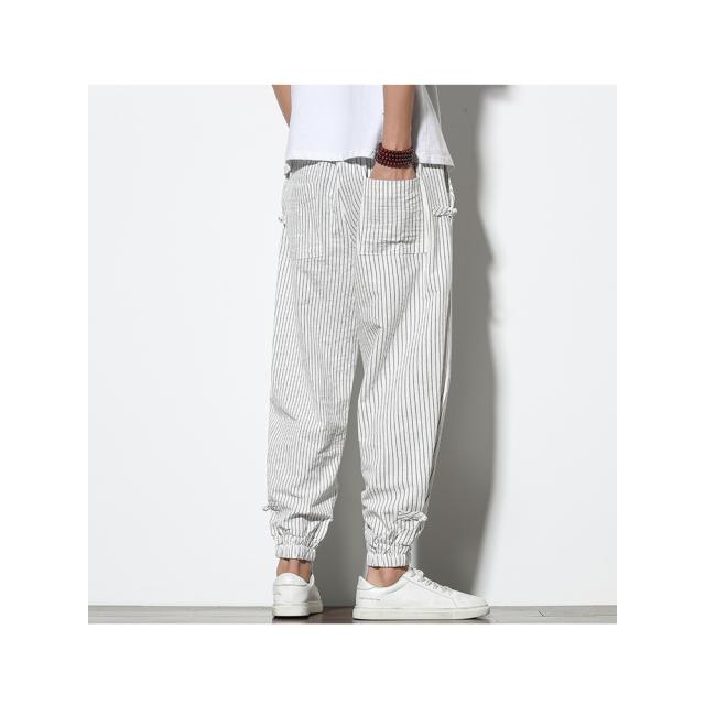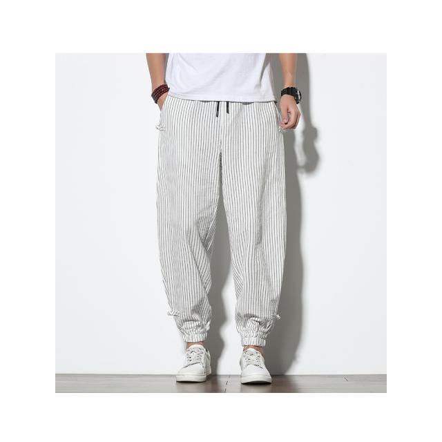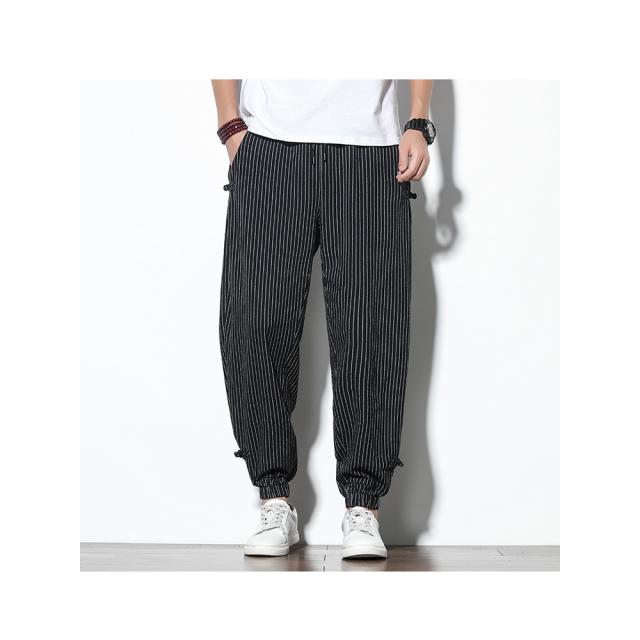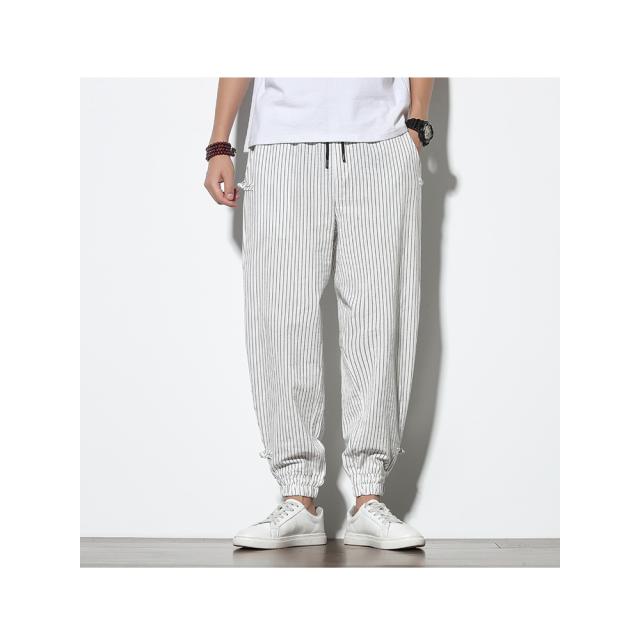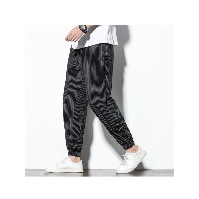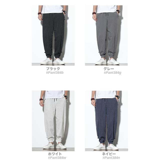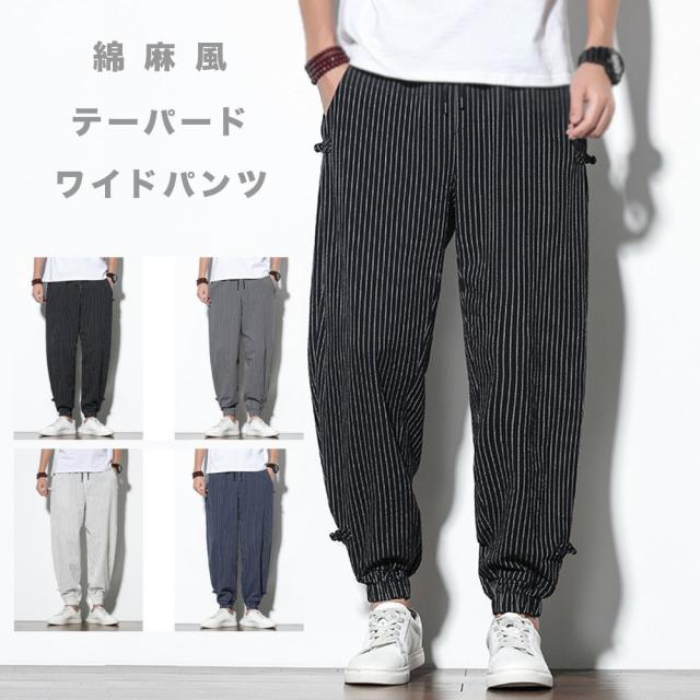 期間限定 SALE 綿麻ジョガーパンツ メンズ ワイドパンツ 涼しい 無地 イージーパンツ ストライプ ゆったり ウエストゴム #Pant384 M便