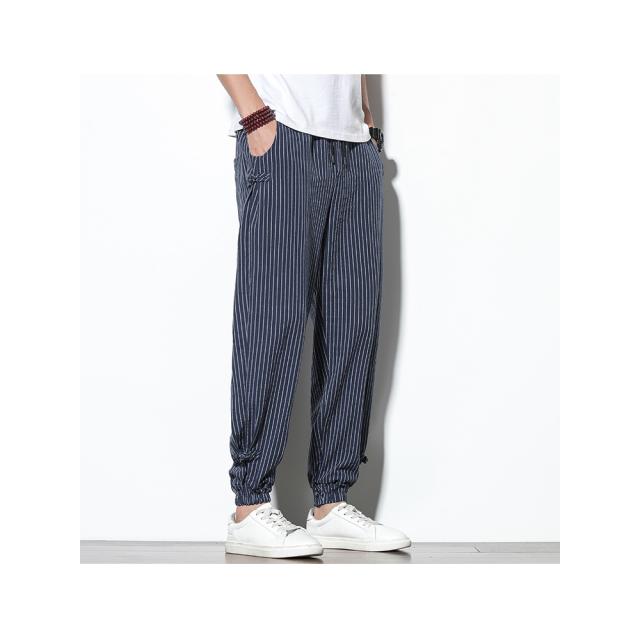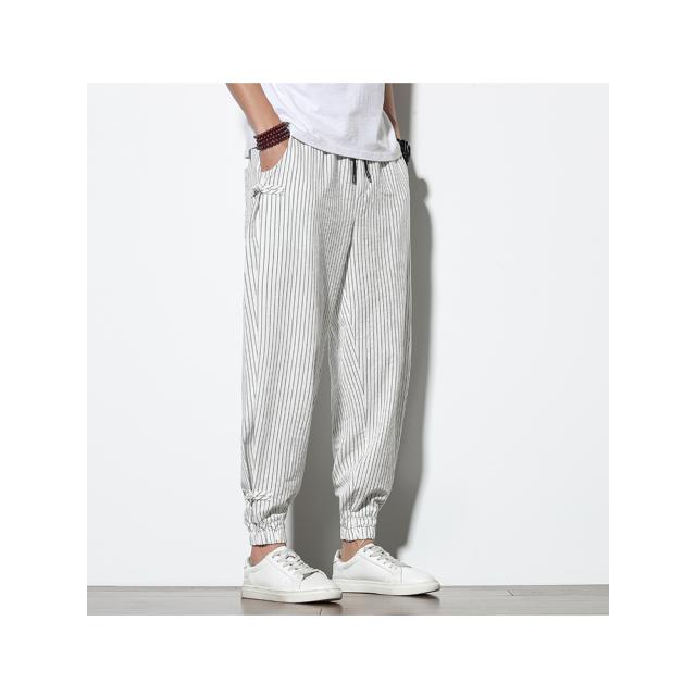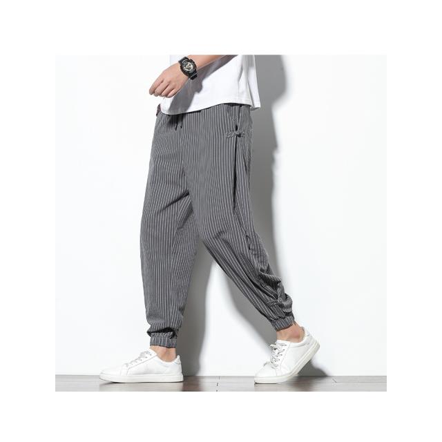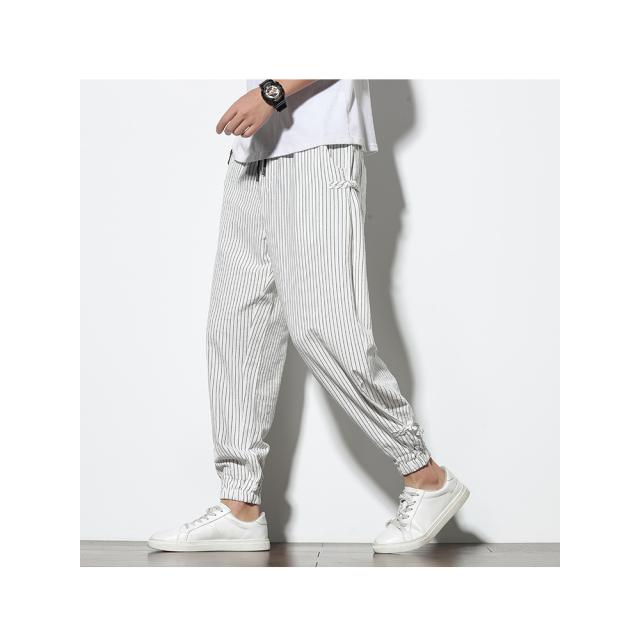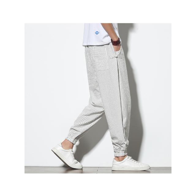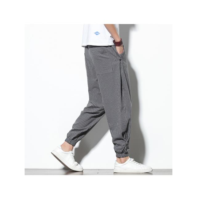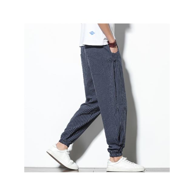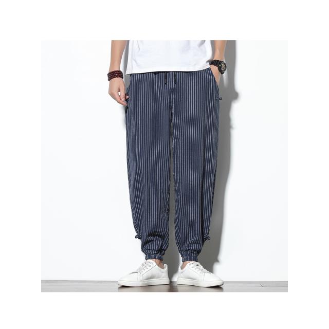 期間限定 SALE 綿麻ジョガーパンツ メンズ ワイドパンツ 涼しい 無地 イージーパンツ ストライプ ゆったり ウエストゴム #Pant384 M便