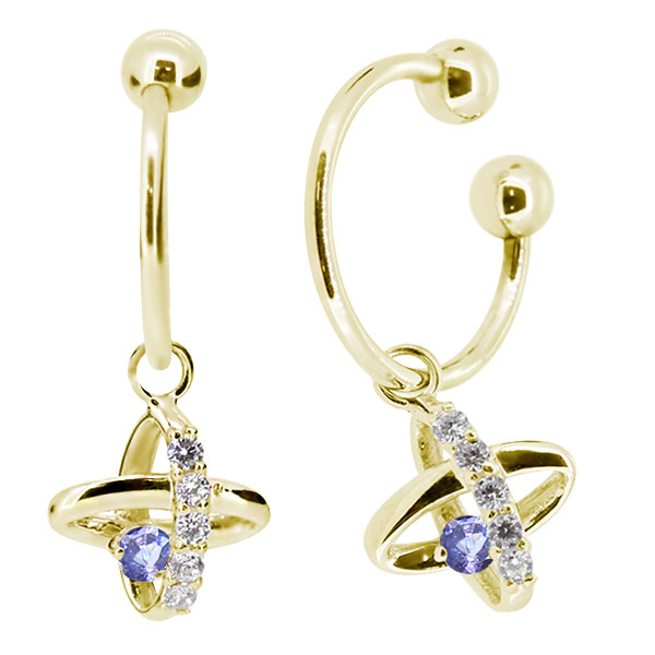 イヤーカフ レディース k18 揺れる イヤリング 星 宇宙 ノンホールピアス フープ タンザナイト 両耳用
