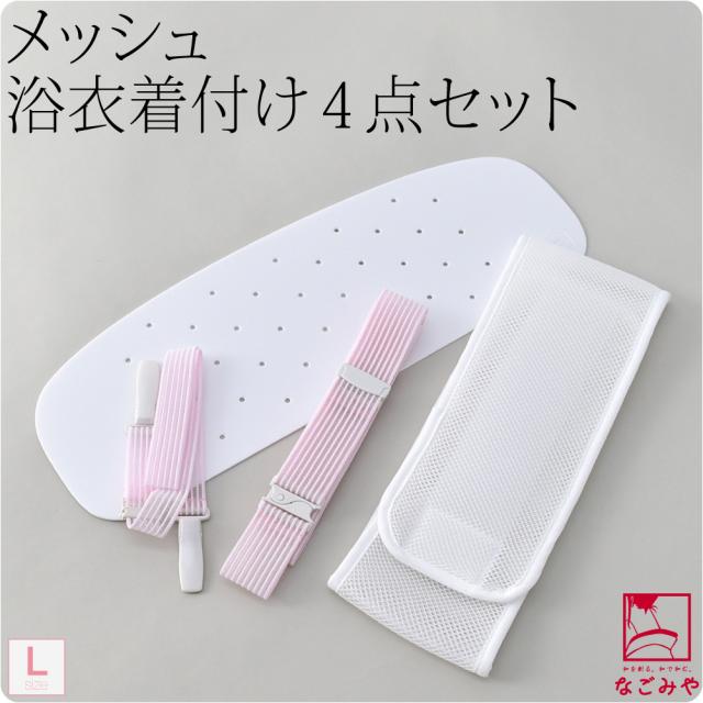 | 備考 | : | 浴衣着付け4点セットです。 暑い夏でも涼しげに着たい。 夏のお出かけといえば、ゆかた。 着崩れが心配な初心者さんにもおすすめの4点セットです。 通気性抜群の夏向けの仕様です。 もちろん、浴衣だけでなくお着物にも一年を通してお使いいただけます。 ・メッシュ伊達締め 立体メッシュを仕様した伊達締めで通気性抜群です。 マジックテープで簡単に装着できます。 丸洗いができるので衛生的で気持ちよくお使いいただけます。 ・メッシュコーリンベルト 胸元の着崩れを防いでキチンとした着姿を保ちます。 メッシュの織ゴムを使用し、通気性抜群。 クリップは、薄型のプラスチック製なのでゴロつかずスッキリ。ワンタッチで締められます。 ・メッシュ腰紐 メッシュの織ゴムを使用しているので、通気性が良く、締め付け感がありません。 留め具はプラスチック製なので、着物を傷めません。 紐を結ばないので、不快な結び目ができないのも嬉しいポイント。 ・穴あき前板 通気性を考慮した前板。 しっかりしたポリエチレン製で帯周りがすっきり綺麗に仕上がります。 浴衣に兵児帯を巻く時も、前板を使用するとよれずに綺麗に巻けますよ。 ■Mサイズはこちらから購入できます。 セット内容(クリックで単品購入ページへ) ■メッシュ伊達締め・■メッシュコーリンベルト・■メッシュ腰紐・■穴あき前板 | ||||||||||||||||||