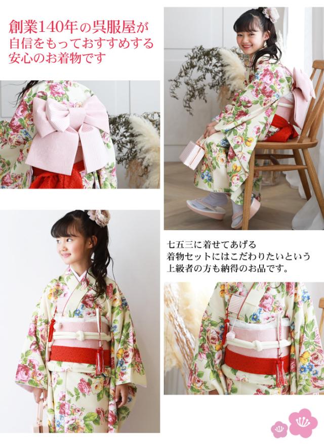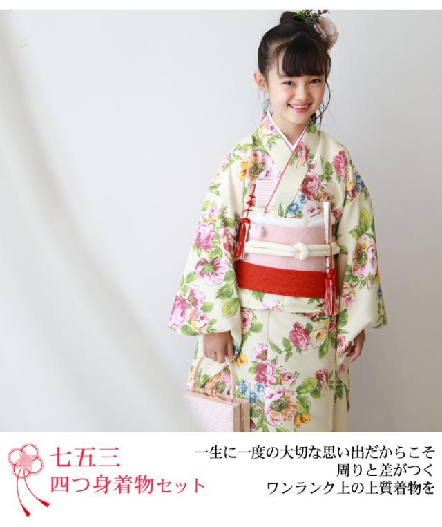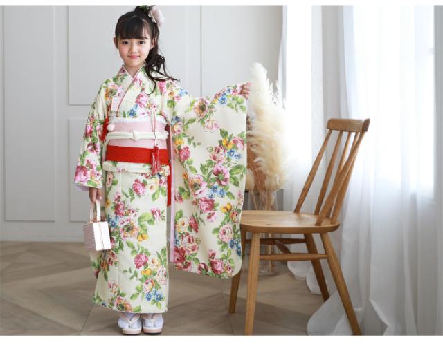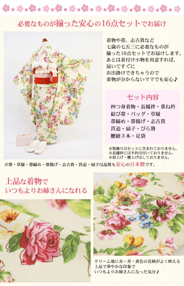 七五三 着物 7歳 フルセット 購入 販売「クリーム地にバラ」 〔zu〕 七歳用七五三四つ身着物16点セット 女の子 七五三参り 正月 ひな祭り 雛祭り 結婚式 初詣 衣装 モダン おしゃれ かわいい
