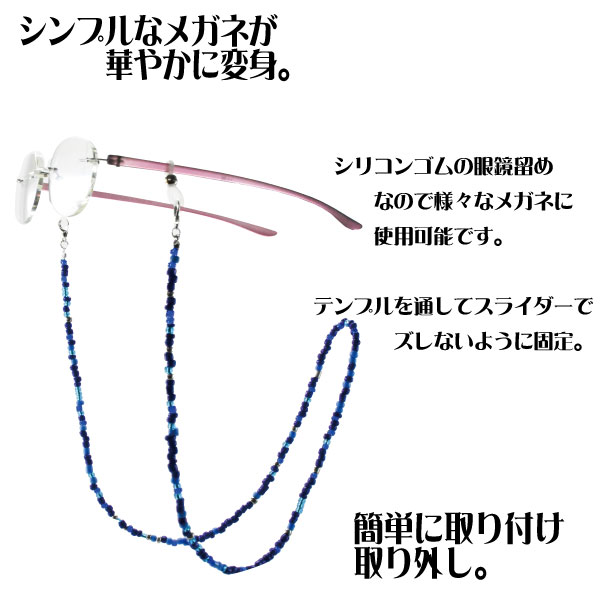 アクセサリー感覚でつけられるビーズのメガネチェーン。