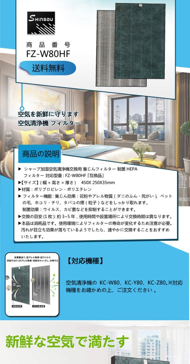 空気清浄機シャープ FZ-W80HF FZW80HF 集じんフィルター 制菌HEPAフィルター fz-w80hf 加湿空気清浄機用 KC-W80-W KC-Y80-W KC-Z80-W 交換フィルター 互換品 1枚入り
