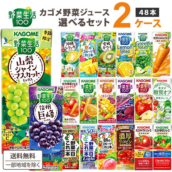 カゴメ 野菜ジュース 選べる2ケース セット 200ml/195ml 48本(24本×2ケース)野菜生活【送料無料※一部地域は除く】 紙パック トマトジュース まとめ買い フルーツ 季節限定 濃厚リコピン じゃばら 桃 シークワーサー キウイ 巨峰 健康 食物繊維