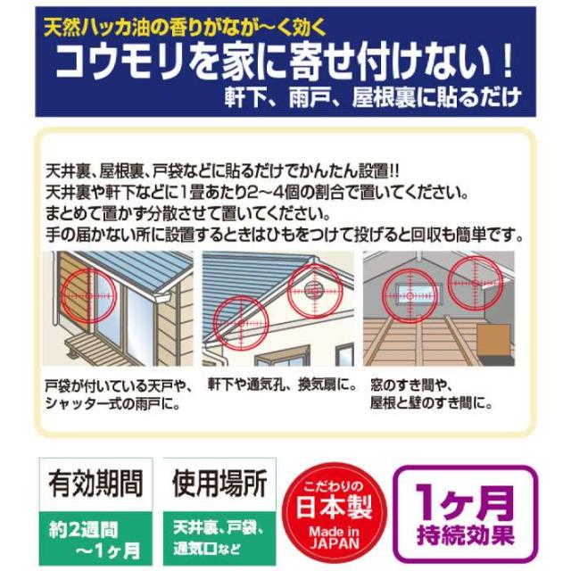 貼るだけ簡単 天然ハッカ油 蝙蝠侵入防止 忌避 忌避剤 駆除 撃退 退治 こうもり 蝙蝠 コウモリ ハッカ油 はっか油 侵入予防 侵入防止 侵入 天井裏 屋根裏 戸袋 通気口 貼るだけ 簡単 簡単設置