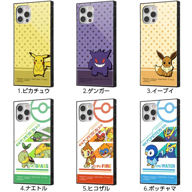 iPhone12 12Pro iPhone12Pro ケース スクエア ポケットモンスター 耐衝撃 KAKU ピカチュウ ゲンガー イーブイ ヒコザル ポッチャマ ストラップ ポケモン