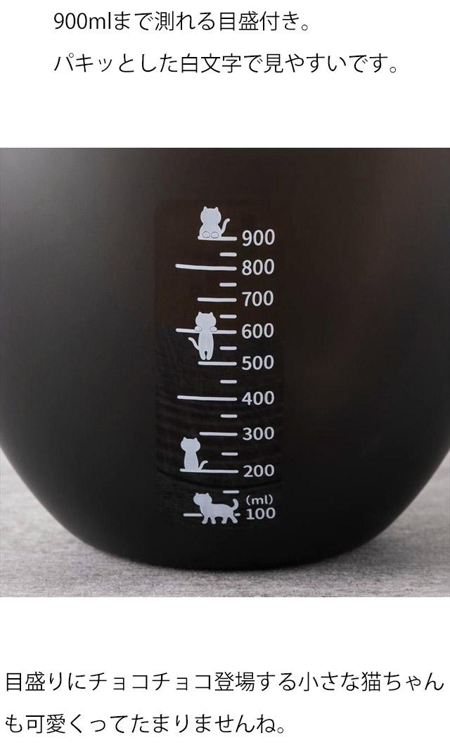 900mlまで測れる目盛付き。パキッとした白文字で見やすいです。