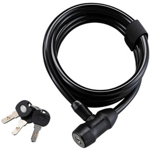 フレームに傷をつけにくいエラストマー製の柔らかボディと取り回ししやすいストレートタイプの柔らかワイヤー採用。防犯性の高いディンプルキー3個付属。