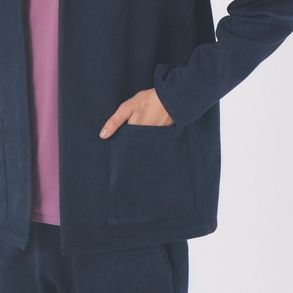 ネオスエード地のジャケット型カーディガン。