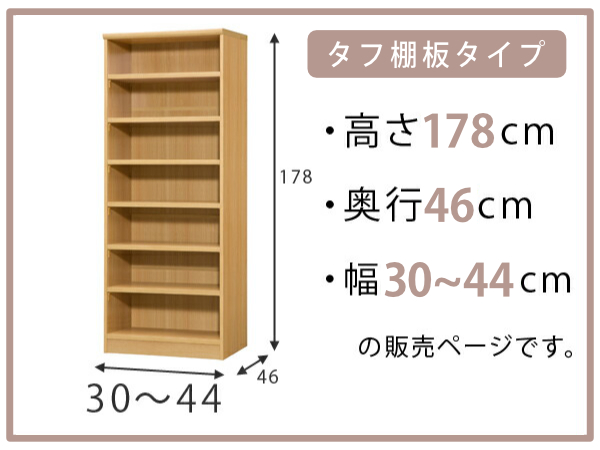オーダー本棚 タフ棚板 幅30-44cm 奥行46cm 高さ178cm ( 収納棚 書棚 本棚 オーダー ラック 壁面収納 書庫 日本製 オーダーメイド 文庫本 コミック フリーラック )