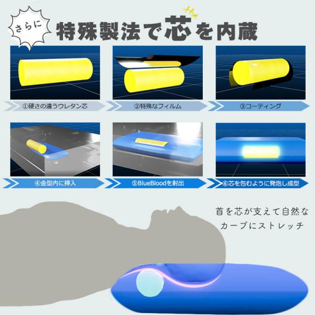 ■シリーズ販売累計720,000個突破!BlueBlood3D体感ピローがさらに進化!硬質ウレタンの芯をインサート成型して首を支える“コア”ピローとアウターカバーのセット。