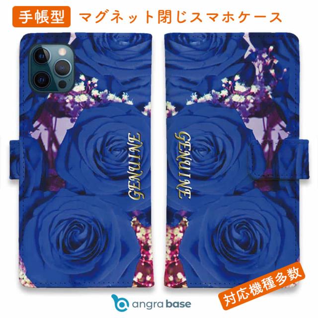 スマホケース 手帳型 カード収納 マグネット iPhone17 Pro Max iPhone Air iPhone16e iPhone16 Pro Max 16 Plus 15 Pro Max Xperia 10 VII Galaxy AQUOS ARROWS Pixel10 XL Genuine バラ (薔薇) ブルー