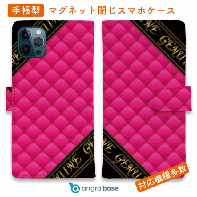 スマホケース 手帳型 カード収納 マグネット iPhone17 Pro Max iPhone Air iPhone16e iPhone16 Pro Max 16 Plus 15 Pro Max Xperia 10 VII Galaxy AQUOS ARROWS Pixel10 XL Genuine マトラッセ柄 ダイアゴナル チェック ピンク