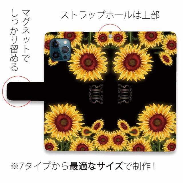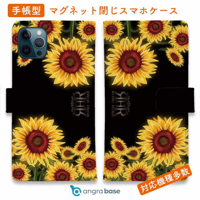 スマホケース 手帳型 カード収納 マグネット iPhone17 Pro Max iPhone Air iPhone16e iPhone16 Pro Max 16 Plus 15 Pro Max Xperia 10 VII Galaxy AQUOS ARROWS Pixel10 XL Genuine ひまわり ブラック