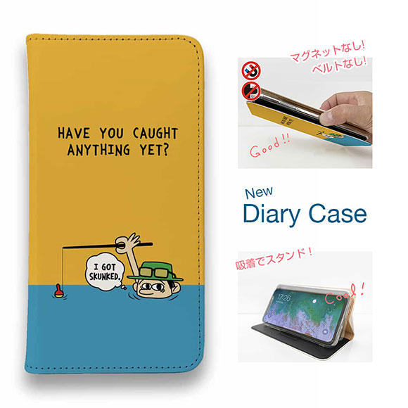 スマホケース 手帳型 ベルトなし iPhone17 Pro Max iPhone Air iPhone16e Pro Max 16 Plus 15 Pro Max 14 Plus Xperia 10 VII Galaxy AQUOS Pixel10 Pro XL 釣り 魚 ルアー 釣りざんまい ユニークアングラー_オレンジ