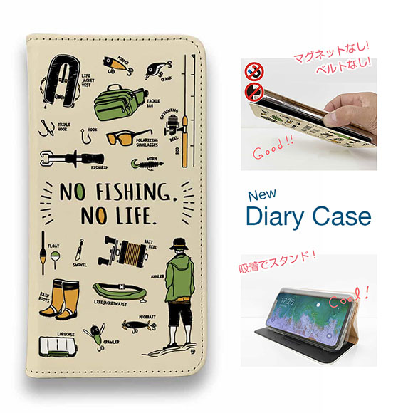 スマホケース 手帳型 ベルトなし iPhone17 Pro Max iPhone Air iPhone16e Pro Max 16 Plus 15 Pro Max 14 Plus Xperia 10 VII Galaxy AQUOS Pixel10 Pro XL 釣り 魚 ルアー 釣りざんまい 釣りに行く準備