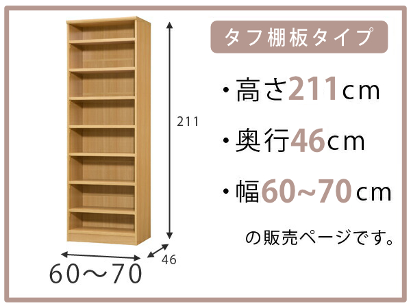 オーダー本棚 タフ棚板 幅60-70cm 奥行46cm 高さ211cm ( 収納棚 書棚 本棚 オーダー ラック 壁面収納 書庫 日本製 オーダーメイド 文庫本 コミック フリーラック )