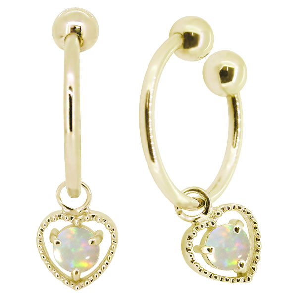 ハート イヤリング k18 ノンホールピアス 揺れる 10月誕生石 オパール イヤーカフ 両耳用