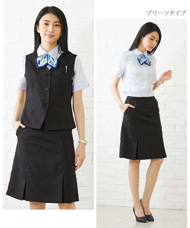 【事務服】2スカート付ベストスーツ(ベスト+プリーツスカート+フレアスカート)(はっ水・消臭テープ付)
