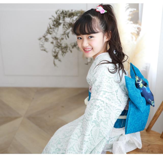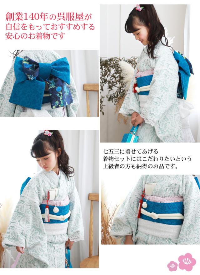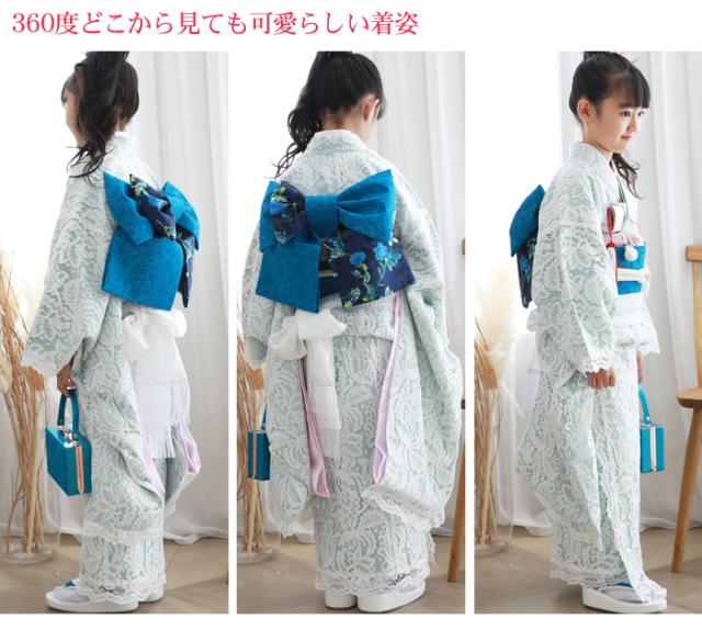 【レンタル】七五三 着物 7歳 レンタルフルセット 四つ身着物23点セットレンタル「水色・白のレース着物」白レース着物 女の子 ひな祭り 雛祭り 衣裳 お正月 結婚式 発表会 晴れ着 モダン おしゃれ かわいい