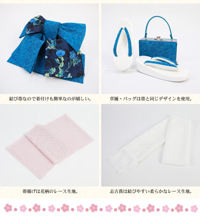 | ※髪飾りはセットに含まれておりません。 ※肩上げ・腰上げはされていません。 ※モデル着用の半衿・長襦袢・着付け小物類の色、デザインはイメージです。 ※帯・草履・帯締め・帯揚げ・志古貴・筥迫・扇子は品質も安心の日本製です。 ※商品画像はお客様のモニター環境等により、実際のカラーと若干異なって見える場合がございます。 ※レース生地は引っかけなどに弱いので、お取り扱いにはご注意ください。 | |||