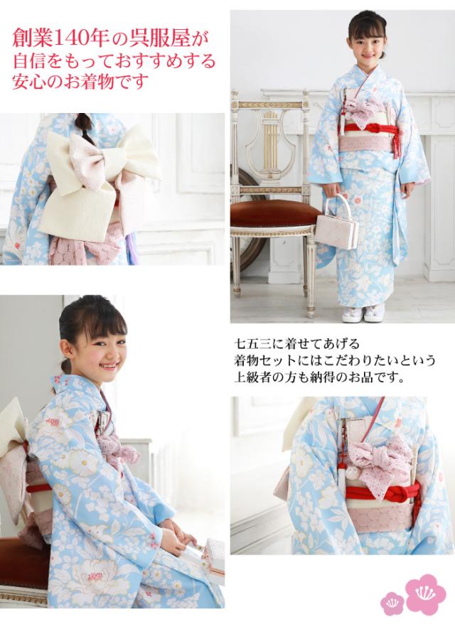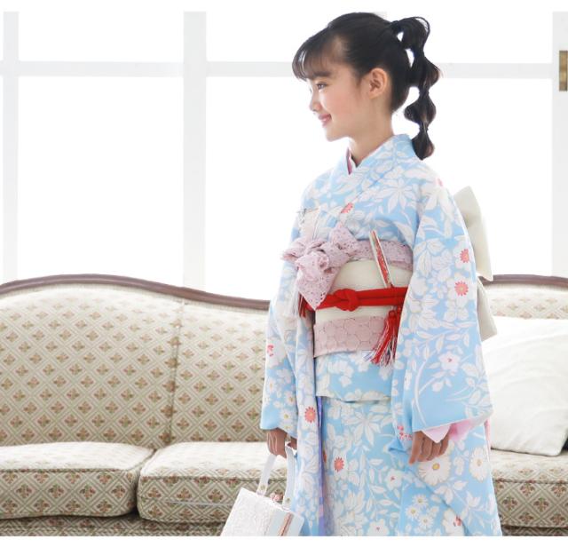 七五三 着物 7歳 レンタルフルセット 四つ身着物23点セットレンタル「水色地に白の花柄」女の子 ひな祭り 雛祭り 衣裳 お正月 結婚式 発表会 晴れ着 モダン おしゃれ かわいい