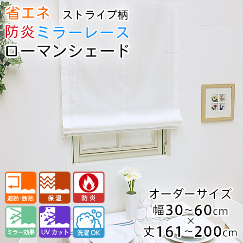 ローマンシェード シェードカーテン レース シングル 防炎 送料無料 ストライプ 省エネ ミラー レースシェード 幅30-60cm 丈161-200cm