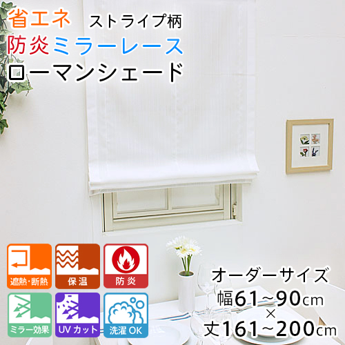 ローマンシェード シェードカーテン レース シングル 防炎 送料無料 ストライプ 省エネ ミラー レースシェード 幅61-90cm 丈161-200cm