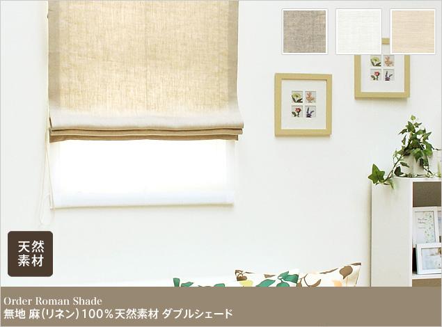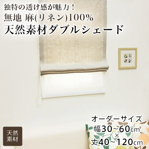 ローマンシェード シェードカーテン ダブル 送料無料 無地 麻100% リネン 天然素材 おしゃれ ダブルシェード 幅30-60cm 丈81-120cm