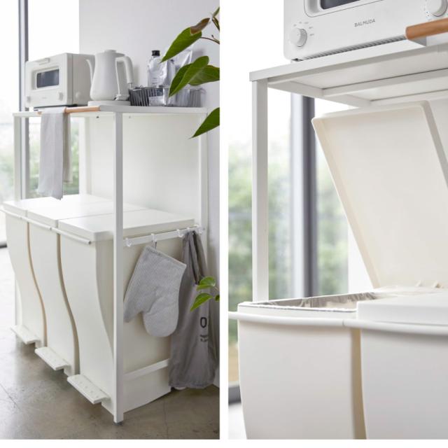 ゴミ箱上のデッドスペースを有効活用。ゴミ箱の数に合わせて横幅が伸縮できるラック。