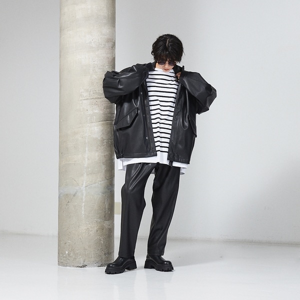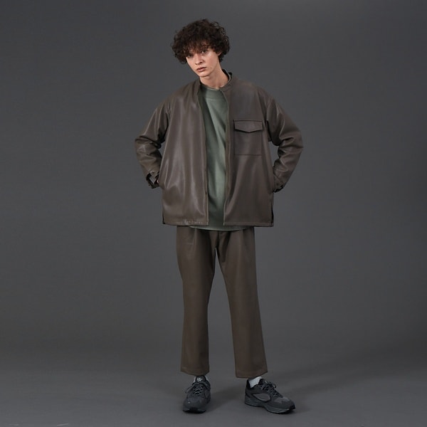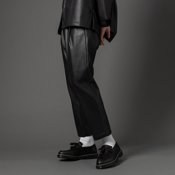 【MYSELF ABAHOUSE】ネオレザー ワンタック スリム テーパード パ