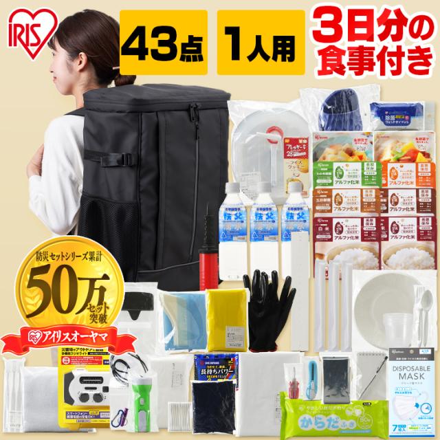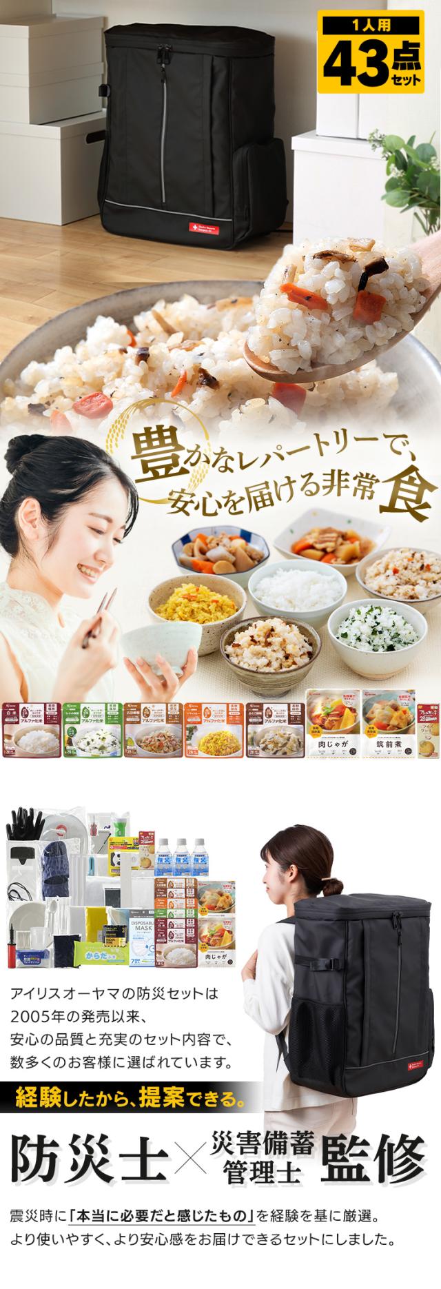 【防災士監修】 防災グッズ セット リュック 1人用 防災セット 43点 食品 非常食 保存水 携帯トイレ 手回し充電ラジオライト 乾電池 懐中電灯 エアーベッド マスク 防災リュック 避難グッズ 災害グッズ 非常用持ち出し袋 アイリスオーヤマ NBS1-43 *