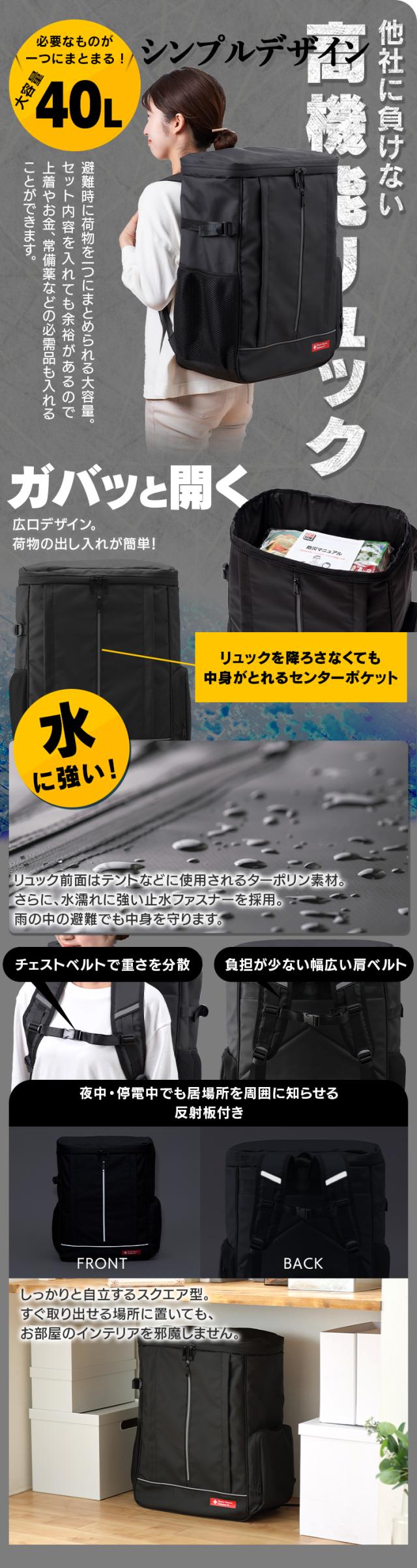 災害時に役立つ用品をセットにした防災リュックです。