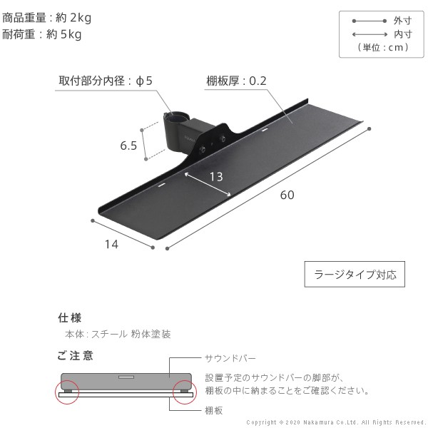 サウンドバー棚板 Sサイズ ラージタイプ対応