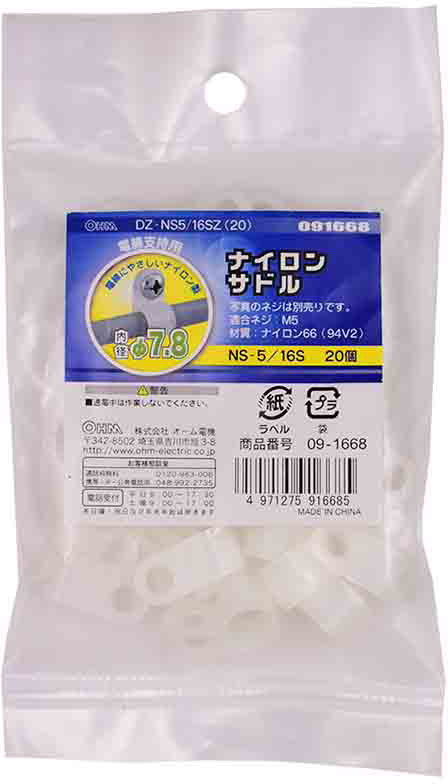 オーム DZ-NS5/16SZ(20) ナイロンサドル φ7.8mm 20個入OHM[DZNS516SZ20] 返品種別A