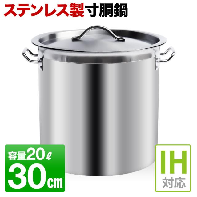 【 IH対応 】 20L 30cm 寸胴鍋 業務用 ステンレス 30cm 軽量 防錆 耐食性 安心 安全 高熱伝導 蓋付き ふた付き 蓋つき 頑丈取っ手