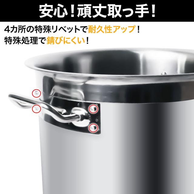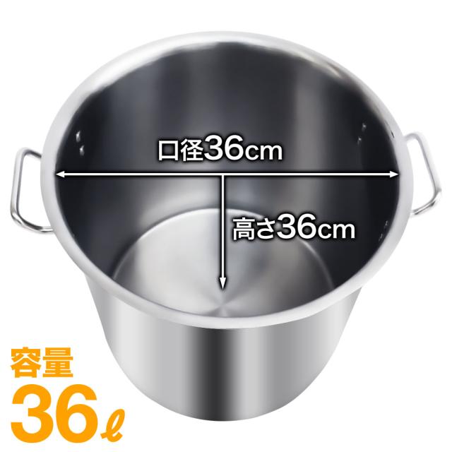 【 IH対応 】 36L 36cm 寸胴鍋 業務用 ステンレス 36cm 軽量 防錆 耐食性 安心 安全 高熱伝導 蓋付き ふた付き 蓋つき 頑丈取っ手
